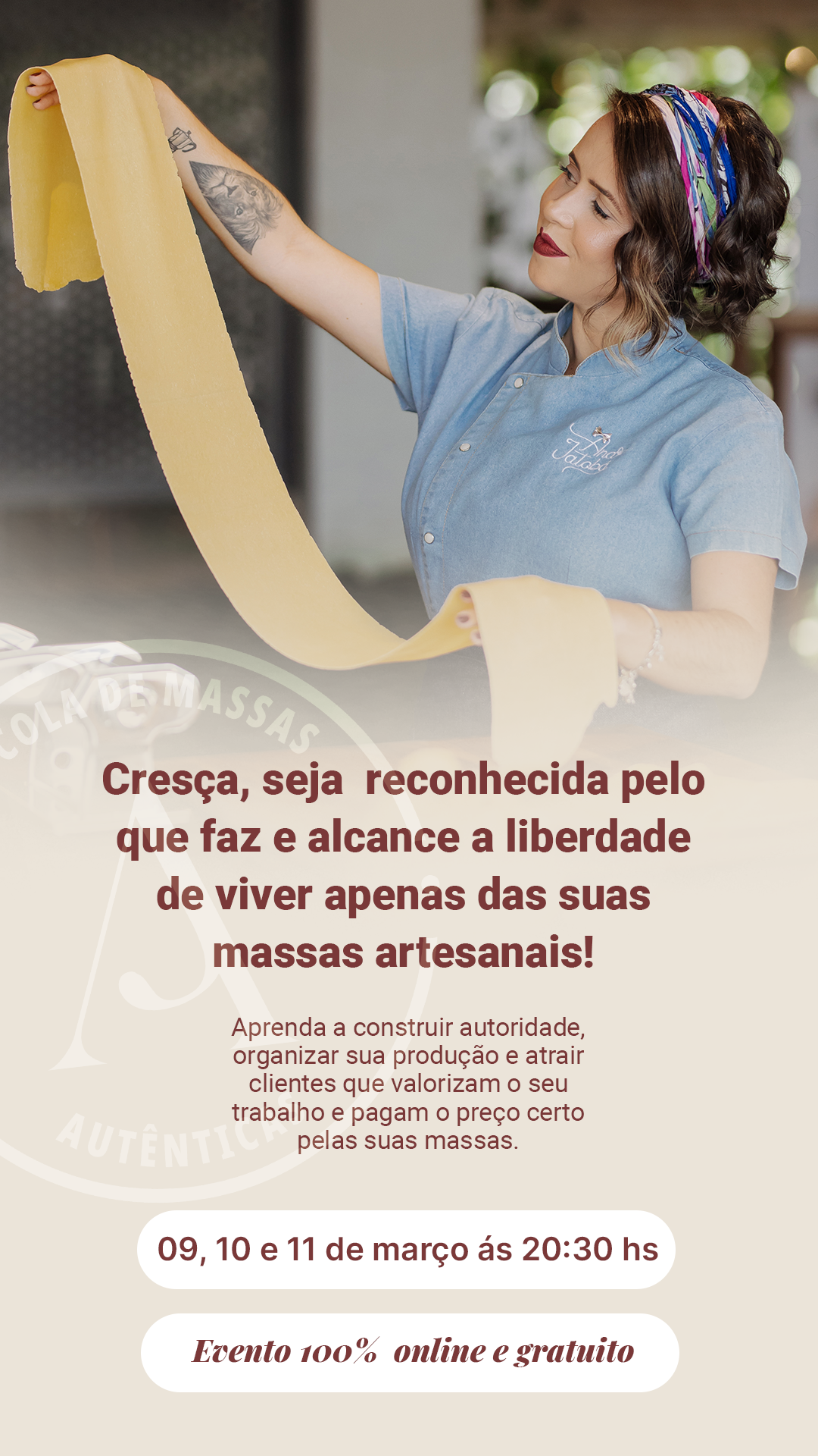 Hoje, à frente da Autêntica Pasta, sua empresa de massas artesanais focada em entregas, eventos e produção para restaurantes, Ana compartilha o que aprendeu na prática com quem quer viver de massas com propósito e previsibilidade.