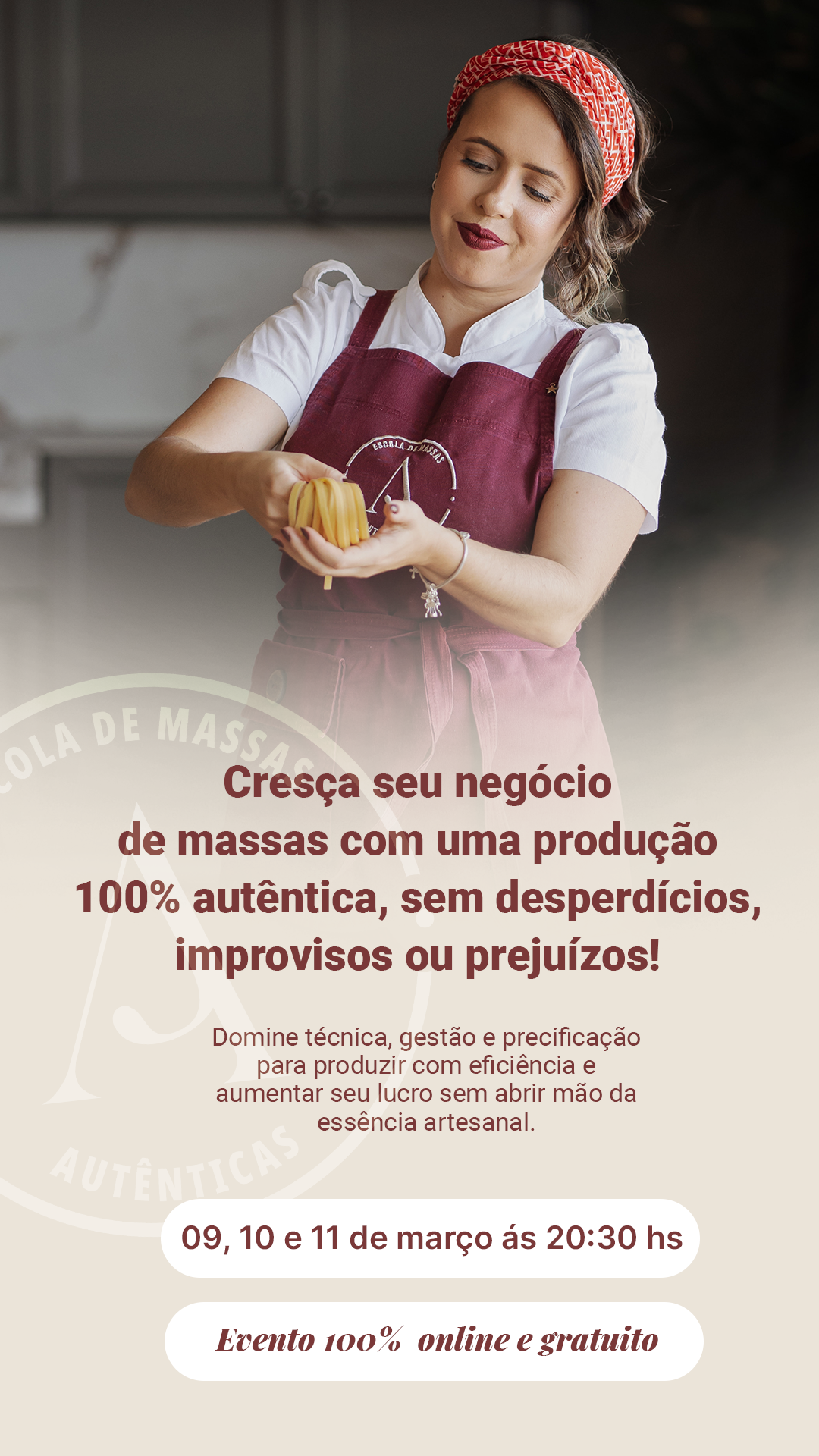 Hoje, à frente da Autêntica Pasta, sua empresa de massas artesanais focada em entregas, eventos e produção para restaurantes, Ana compartilha o que aprendeu na prática com quem quer viver de massas com propósito e previsibilidade.
