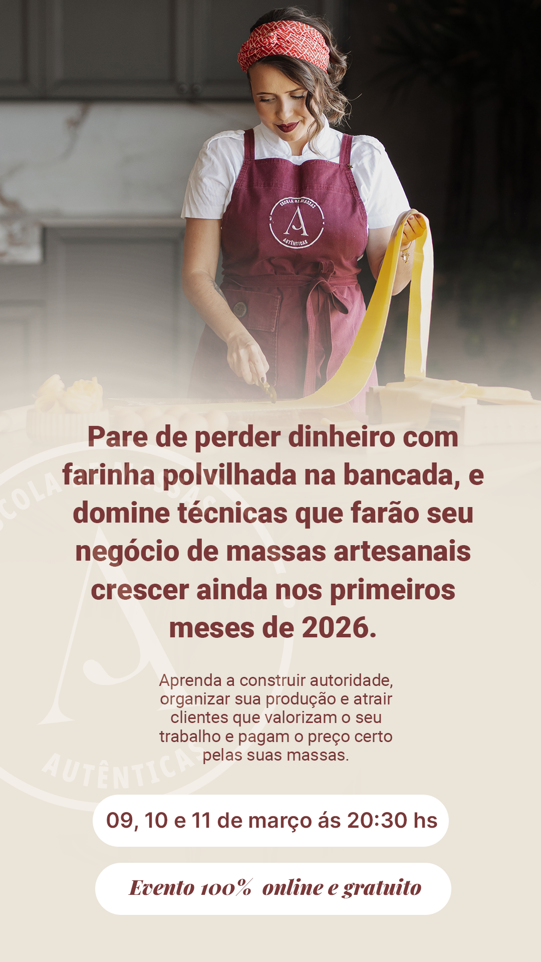 Hoje, à frente da Autêntica Pasta, sua empresa de massas artesanais focada em entregas, eventos e produção para restaurantes, Ana compartilha o que aprendeu na prática com quem quer viver de massas com propósito e previsibilidade.